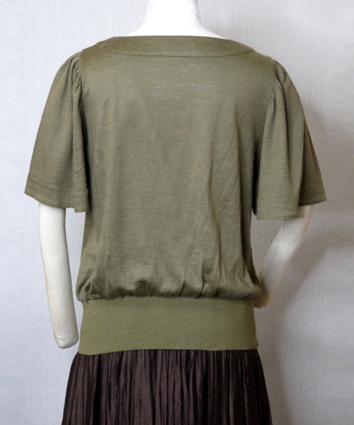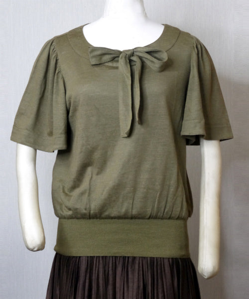 イヴ サンローラン フレア袖リボン半袖ニット(ライトカーキ)