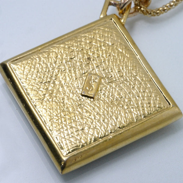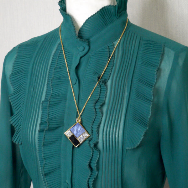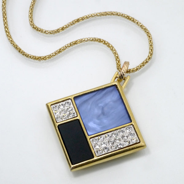 スクエア型に、青・クリア・ブラックのストーンが施されたネックレス