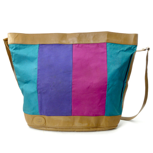 オールドグッチ トリコロールカラー大型ショルダー(緑/ピンク/紫)