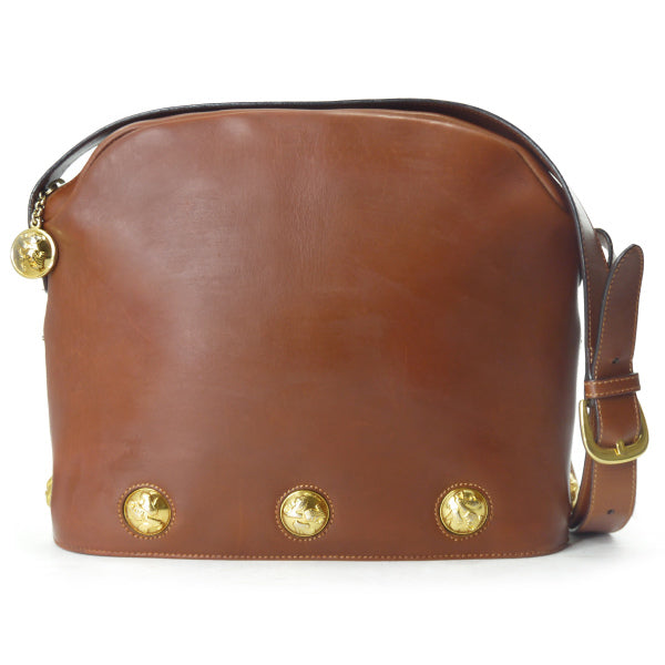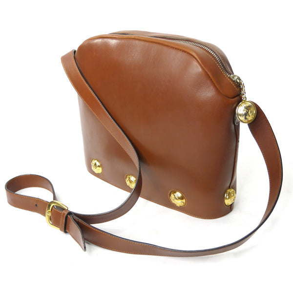 Salvatore Ferragamo ヒールモチーフ スタッズ総革ショルダー(茶)