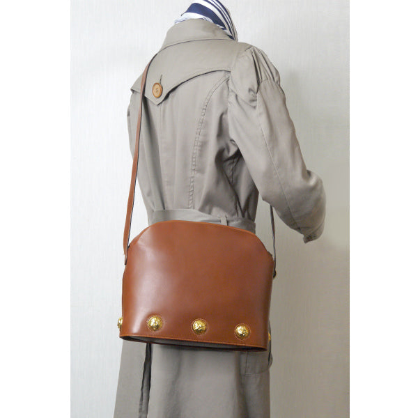ゴールド金具が上品で、レトロなキャラメルブラウンが素敵な逸品!