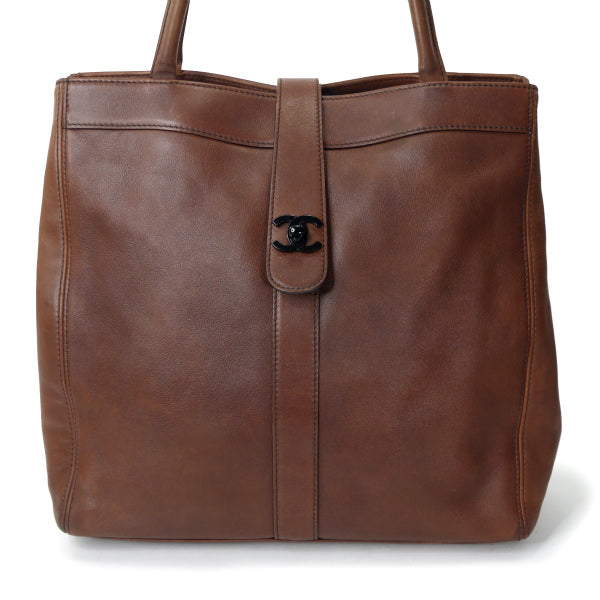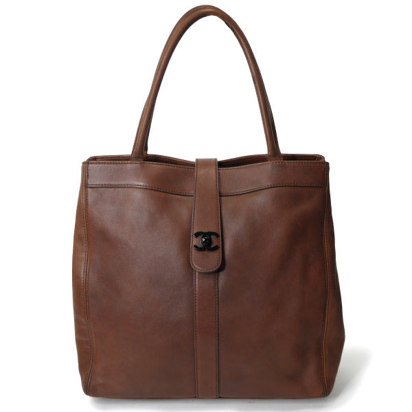 OLD CHANEL スクエア総革製トートバッグ(茶)