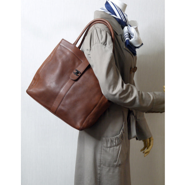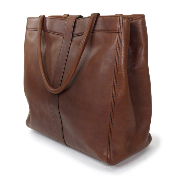 オールドシャネル スクエア総革製トートバッグ(茶)