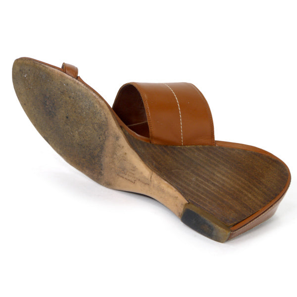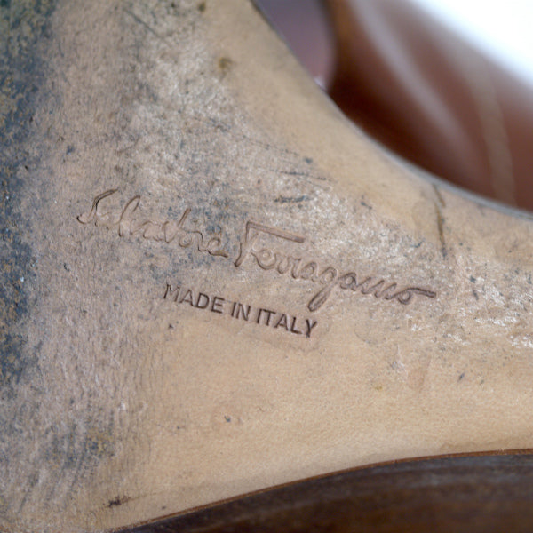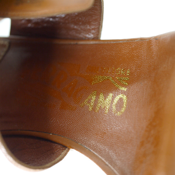 Salvatore Ferragamo ウッドウェッジソール レザーサンダル(茶)
