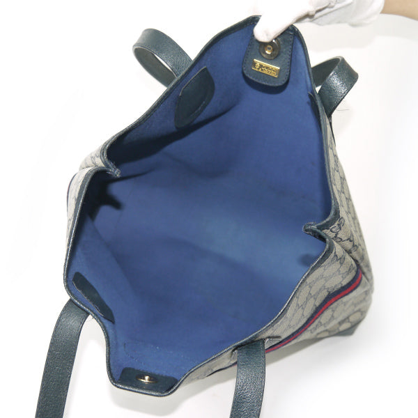 OLD Gucci  GG金具×シェリー スクエアトートバッグ(青)