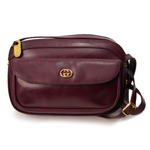 オールドグッチ 総革GG金具 横長ショルダー(ボルドー)
