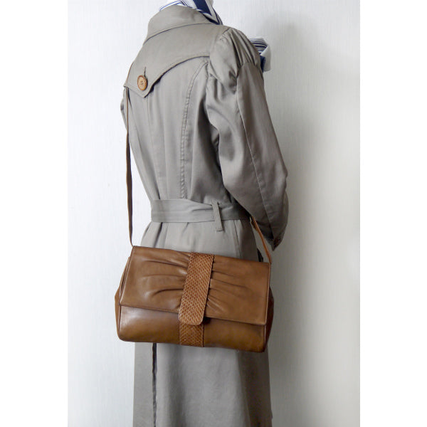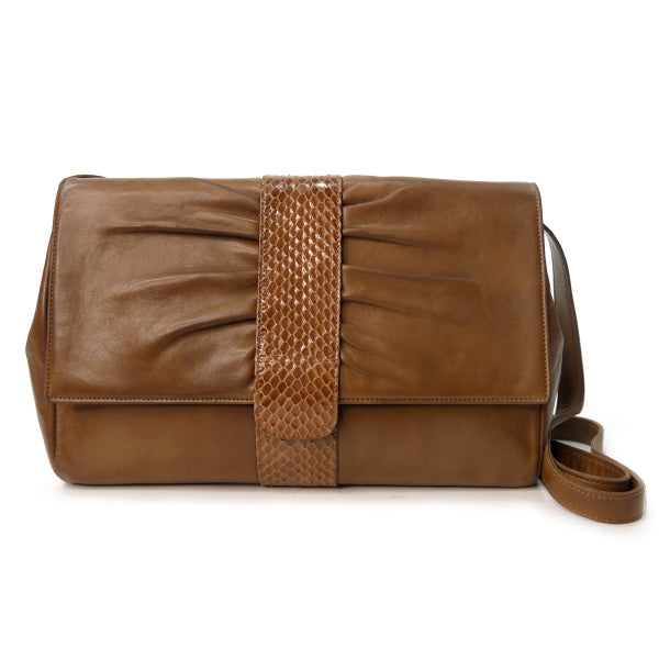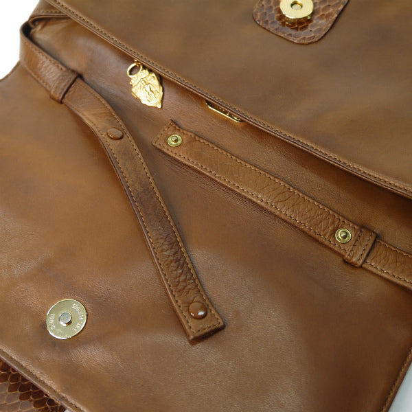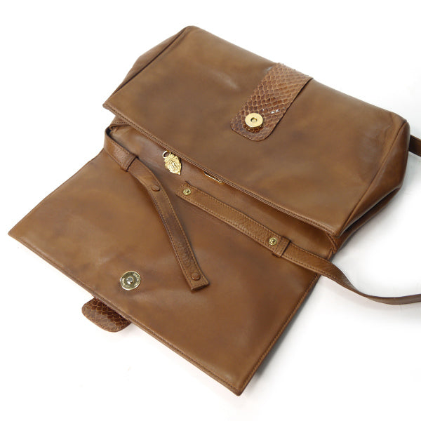 オールドグッチ パイソン×ラムスキン異素材コンビ2WAYバッグ(茶)