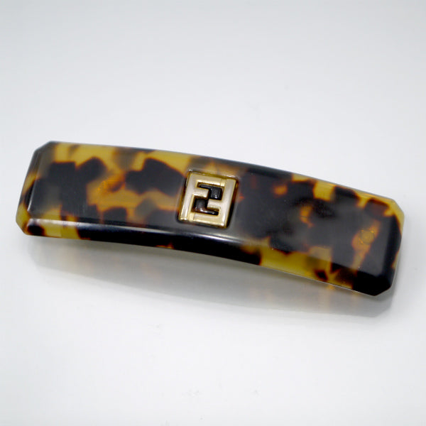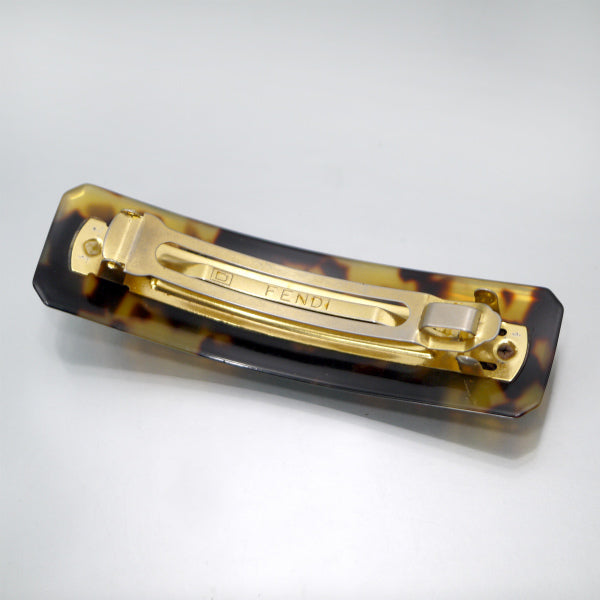 透け感のあるブラウンべっ甲調にダブルFロゴが華やかなバレッタ