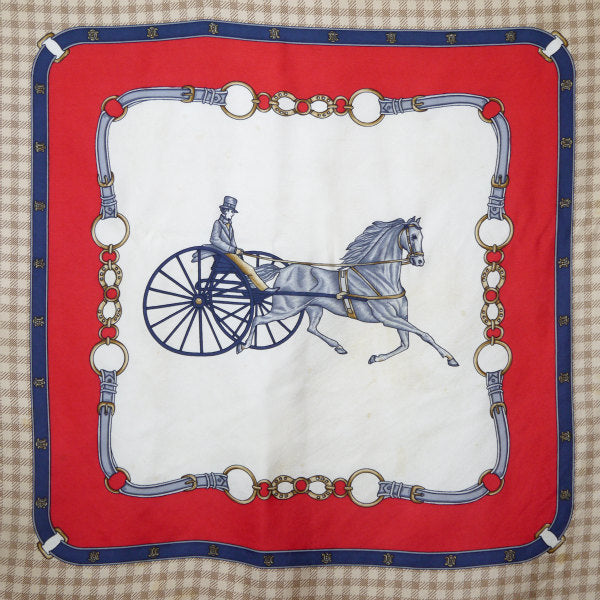 オールドセリーヌ 馬車×ギンガムチェック柄シルク大判スカーフ(紺系)