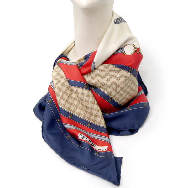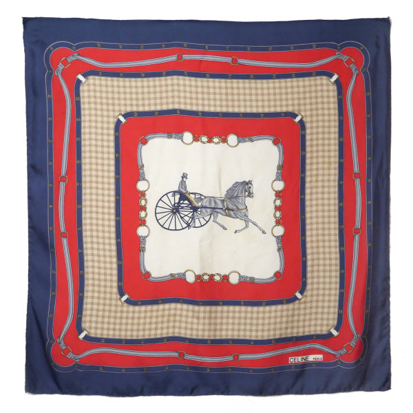 CELINE <訳あり>シルク大判スカーフ(紺系)
