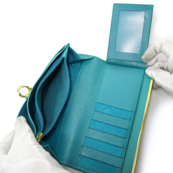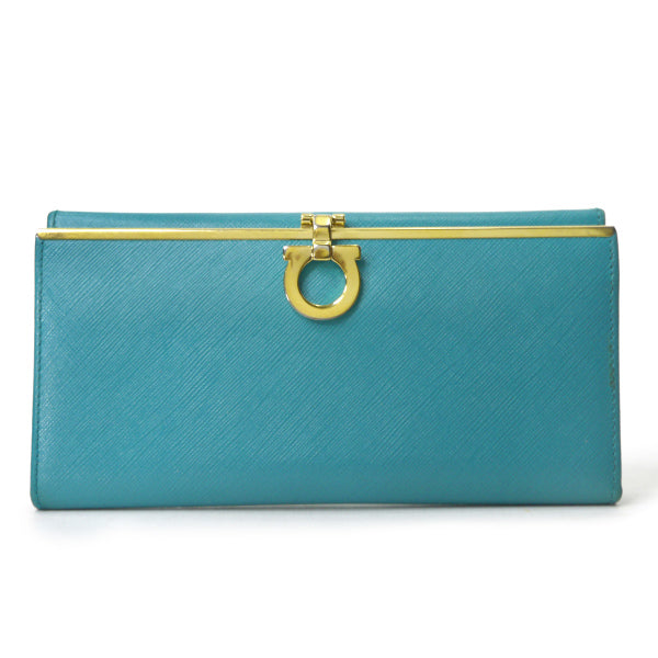 Ferragamo ガンチーニ留め具レザー長財布(ペールブルー)