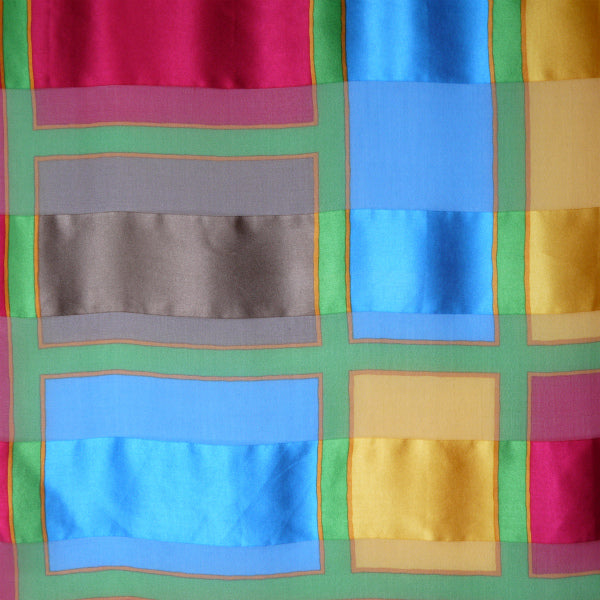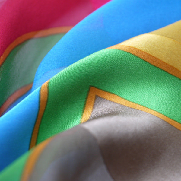 イブ サンローラン シルク大判スカーフ マルチブロックカラー(赤系)