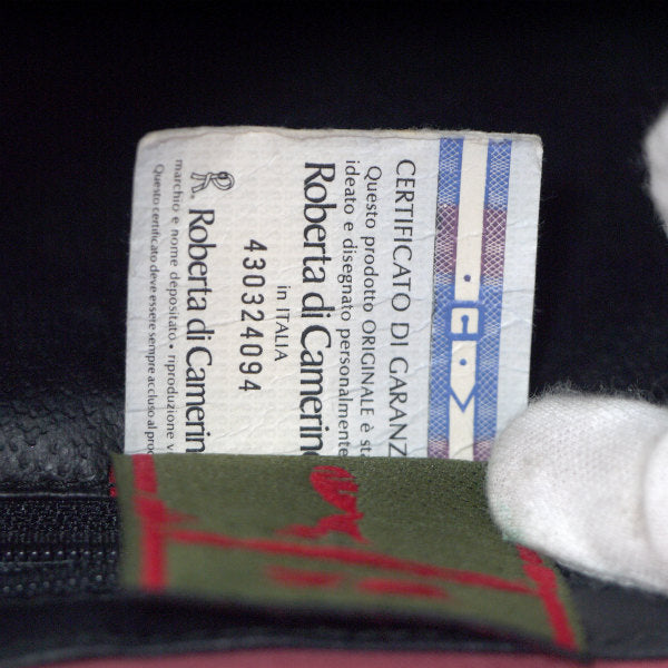 ロベルタの定番モチーフ ベルトが鎖状になっているだまし絵柄