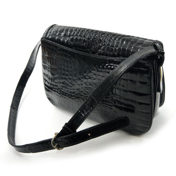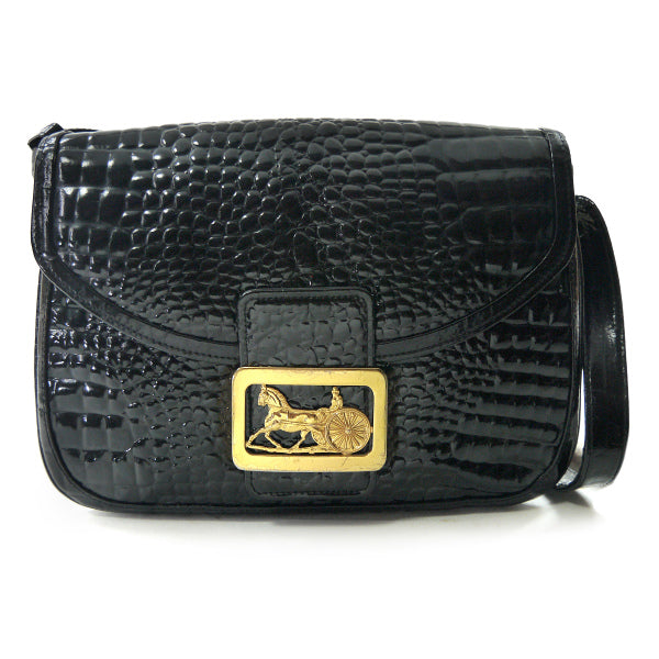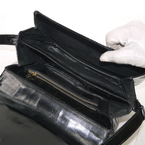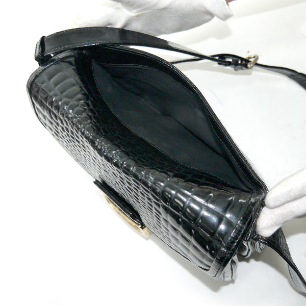 オールドセリーヌ 馬車金具クロコダイル型押しショルダー(黒)