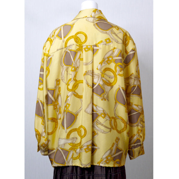 オールドセリーヌ 総柄サークルロゴ シルクブラウス(黄系)