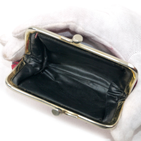 Roberta ベルト柄がま口コインケース(モケット/赤系 )