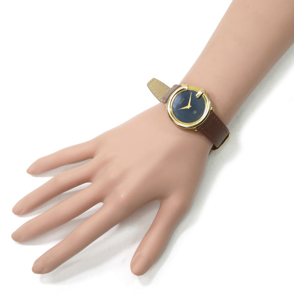 OLD Gucci  丸型Gベゼル ブラックフェイス腕時計(茶)