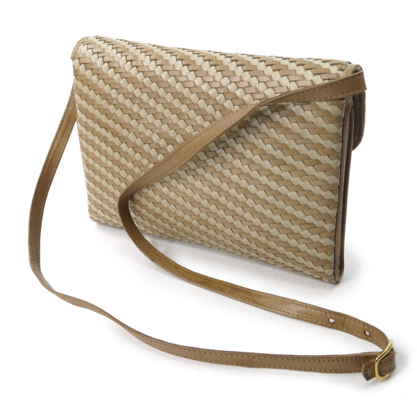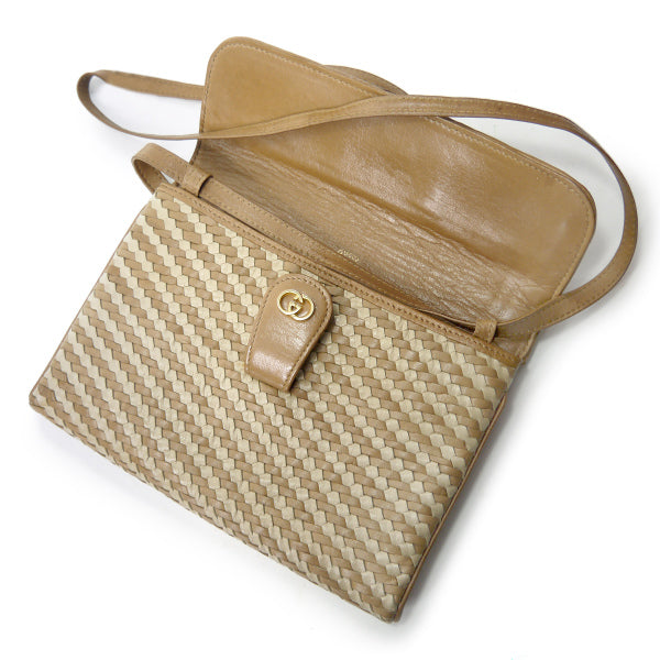 オールドグッチ 編み込みレザーポシェットバッグ(キャメル)
