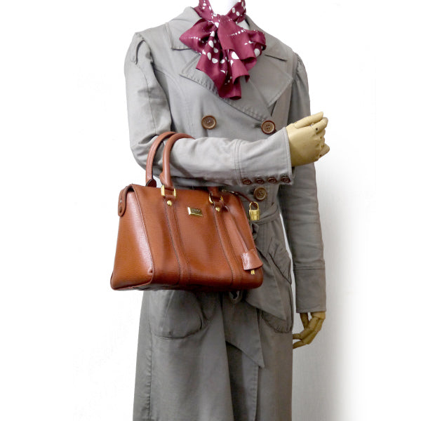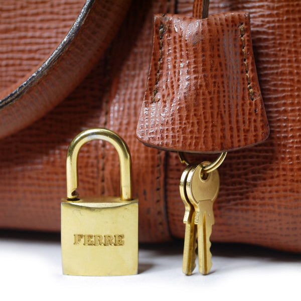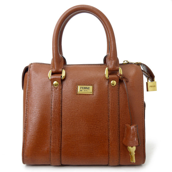 GIANFRANCO FERRE 鍵付き総革ミニボストン(明茶)