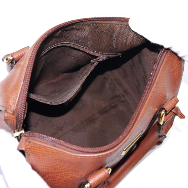 ジャンフランコ フェレ鍵付き総革ミニボストン(明茶)