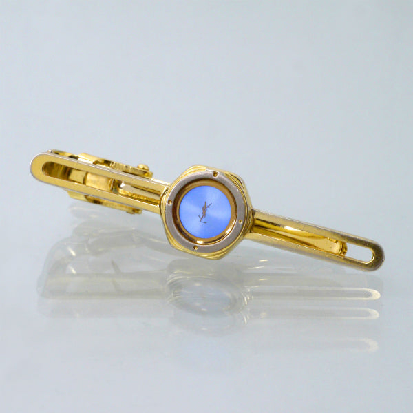 イブ サンローラン ロゴ入りネクタイピン (ブルー/ゴールド)