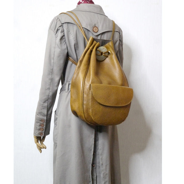 イブ サンローラン バッファローリング巾着レザーリュック(茶)