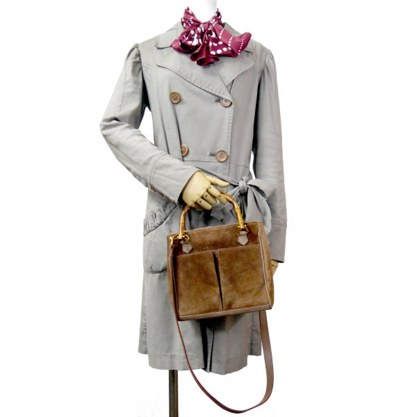 オールドグッチ スエードバンブー2WAYバッグ(茶)