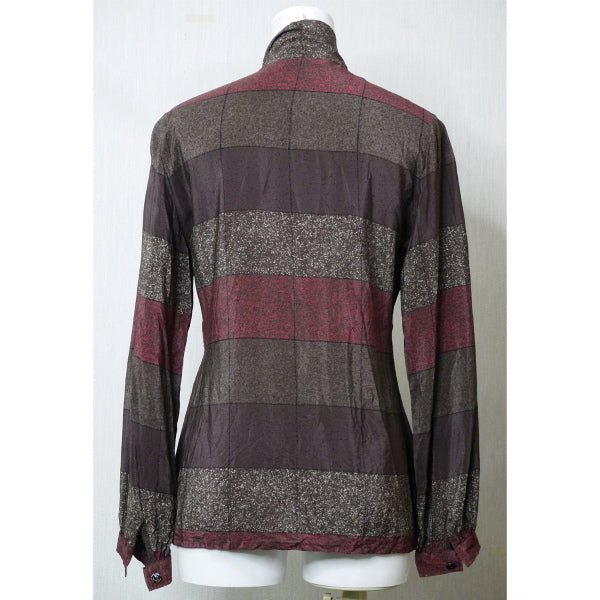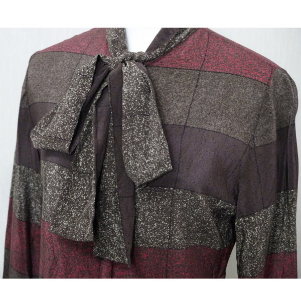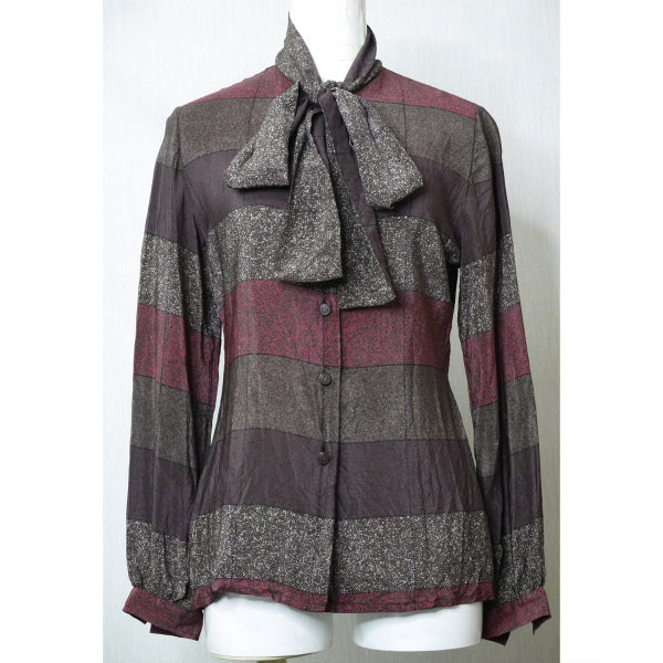 Old Dior マルチボーダー ボウタイシルクブラウス (茶系)