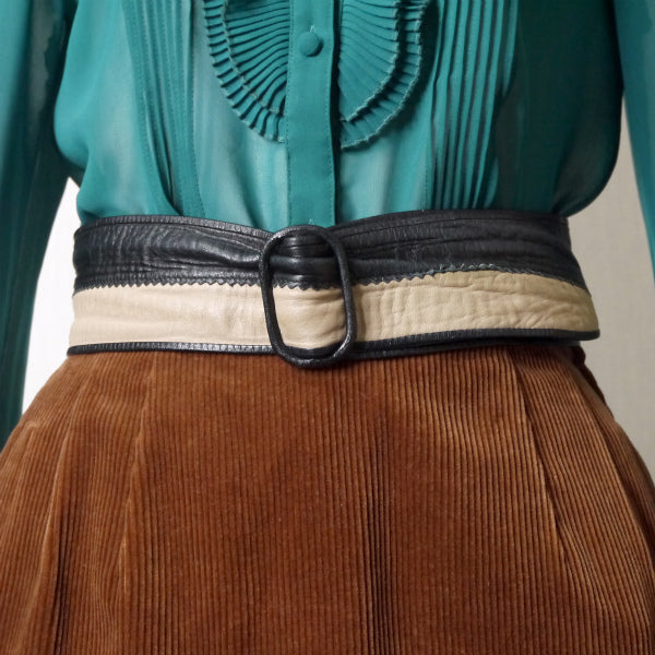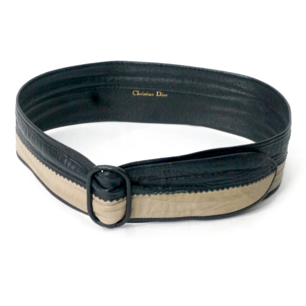 Old Dior バイカラー レザーウエストベルト(黒/ベージュ)