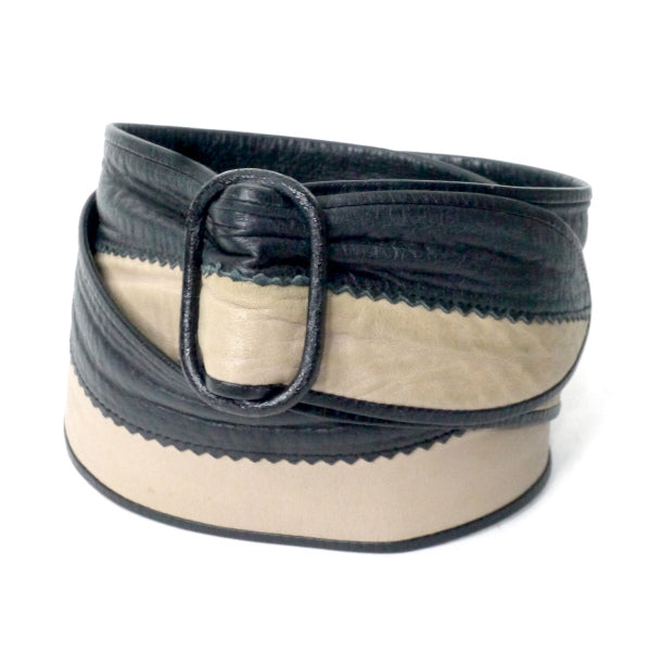 オールドディオール バイカラー レザーウエストベルト(黒/ベージュ)
