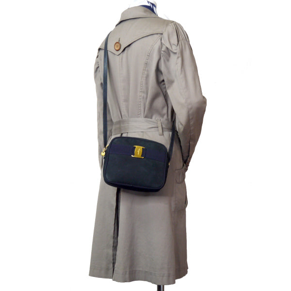 サルヴァトーレ フェラガモ Varaリボン ミニポシェット(紺/ヌバック)