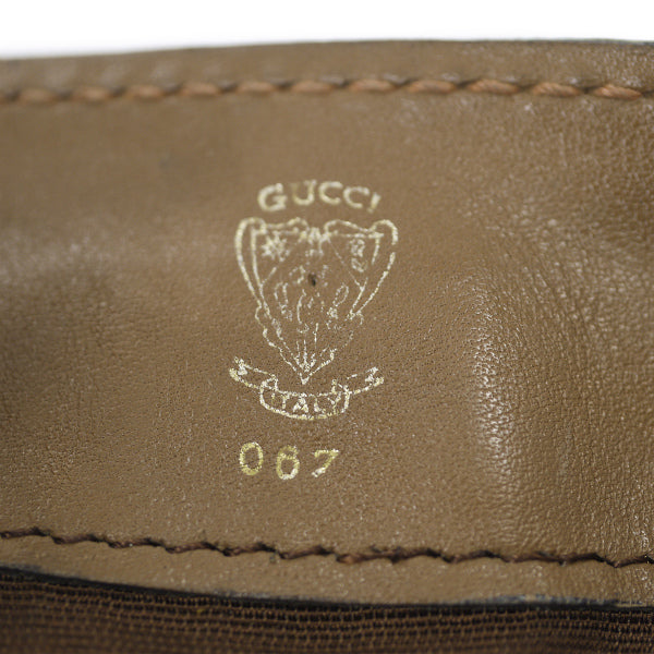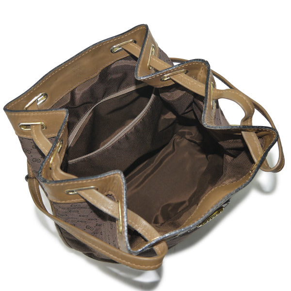 オールドグッチ 筆記体ロゴ巾着型マイクロGGショルダー(茶)