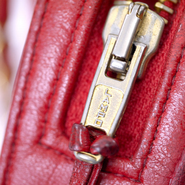 OLD CHANEL マトラッセ 外ポケットWチェーンバッグ(赤)