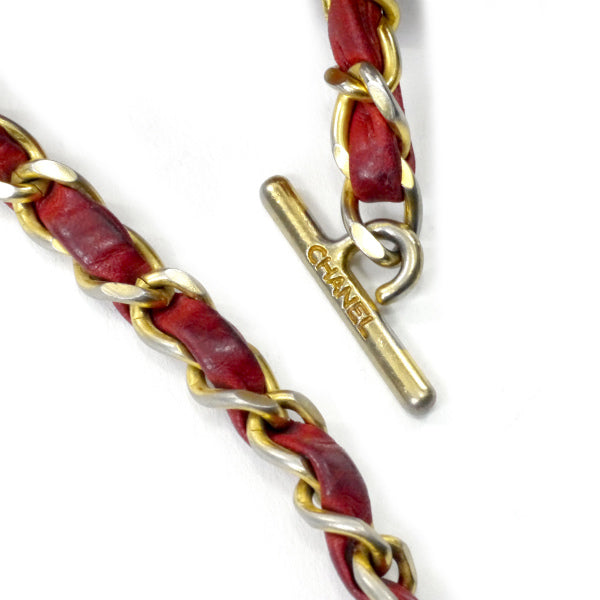 ヴィンテージシャネル マトラッセ 外ポケットWチェーンバッグ(赤)