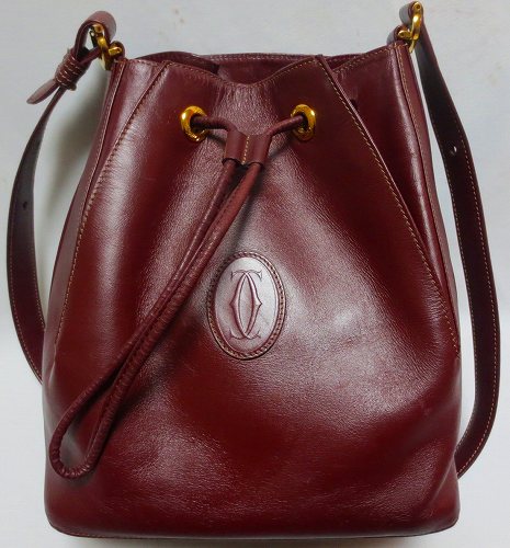 カルティエ ボルドー巾着ショルダー 牛皮 ボルドーカラー Maid in France 内装ファスナー式ポケット1 サイズ(約 cm)横23 縦28 奥18 ショルダー53〜125(斜めがけ余裕) 外装・内装ともに美品 詳細〜画像