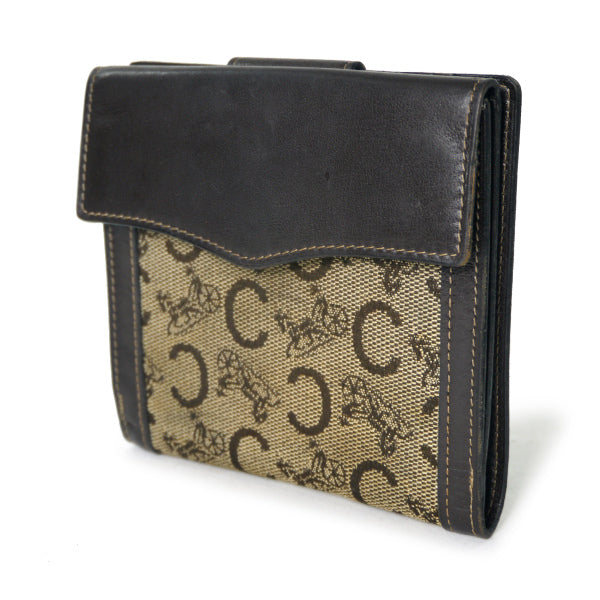オールドセリーヌ 馬車柄ジャガードWホック折財布(茶)