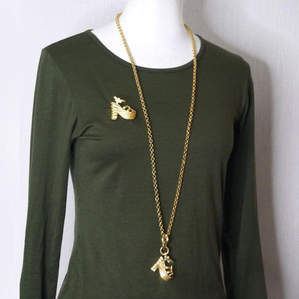 フェラガモ代表作!大ぶりのハイヒールトップが豪華なペンダントとブローチのセット☆