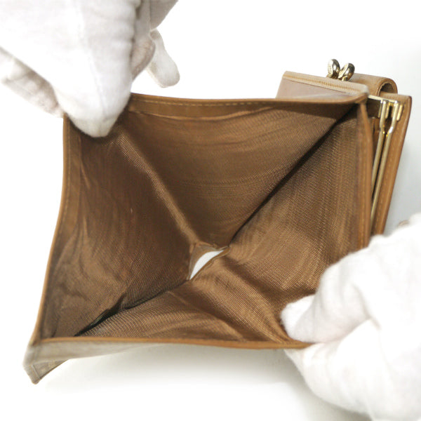 OLD CELINE 総革マカダムロゴがま口折財布(茶)