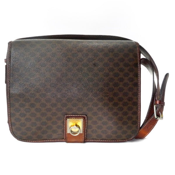 オールドセリーヌ マカダム柄 ロゴリングスクエア型ショルダー(茶)