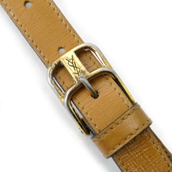 イブ サンローラン バイカラーYSLロゴ横長ショルダー(キャメル/グレー系)