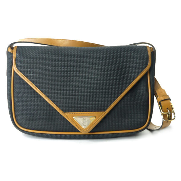 YVES SAINT LAURENT バイカラーYSLロゴ横長ショルダー(キャメル/グレー系)