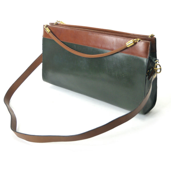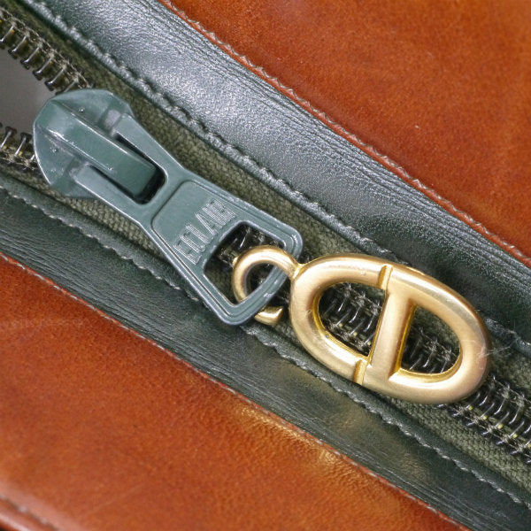 Old Dior バイカラー総革2WAYショルダー(深緑×茶)