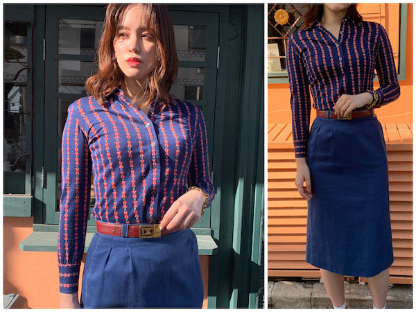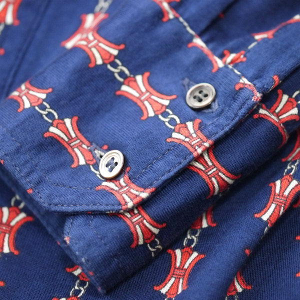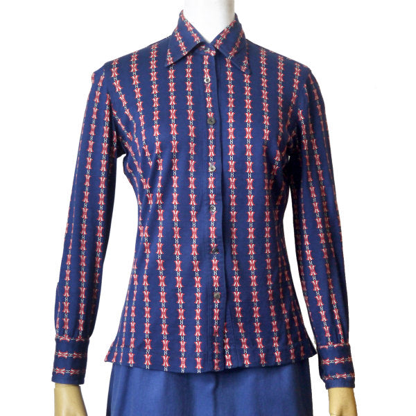 OLD CELINE レア!!マカダム柄レトロブラウス(紺系)