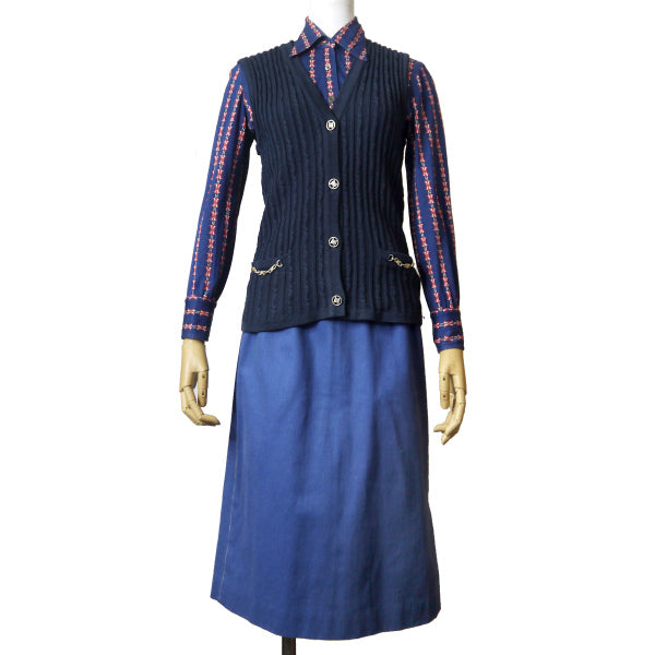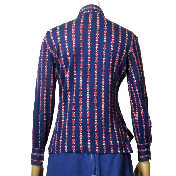 オールドセリーヌ レア!!マカダム柄レトロブラウス(紺系)