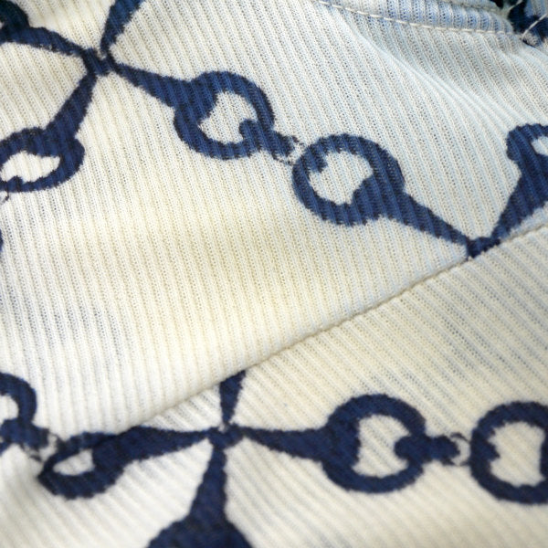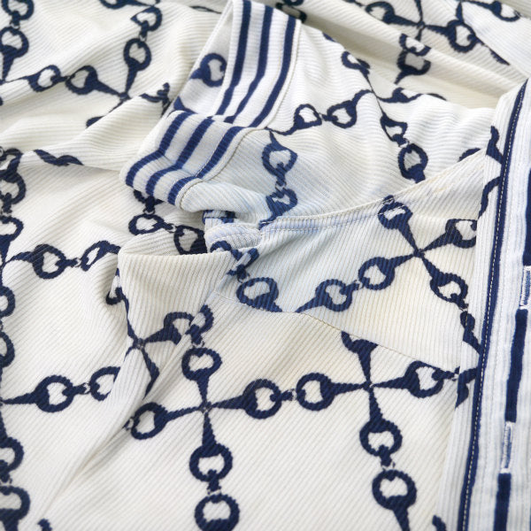 ホワイトベースにネイビーのビットチェーン柄が全面にプリントされた贅沢すぎる一枚です!