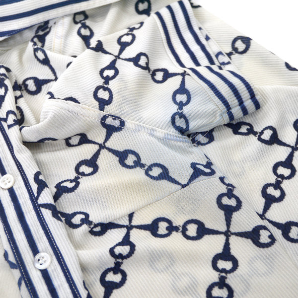 OLD CELINE ビットチェーン柄半袖シャツ(白系)
