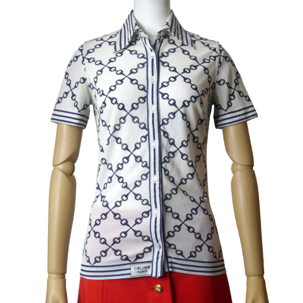 オールドセリーヌ ビットチェーン柄半袖シャツ(白系)