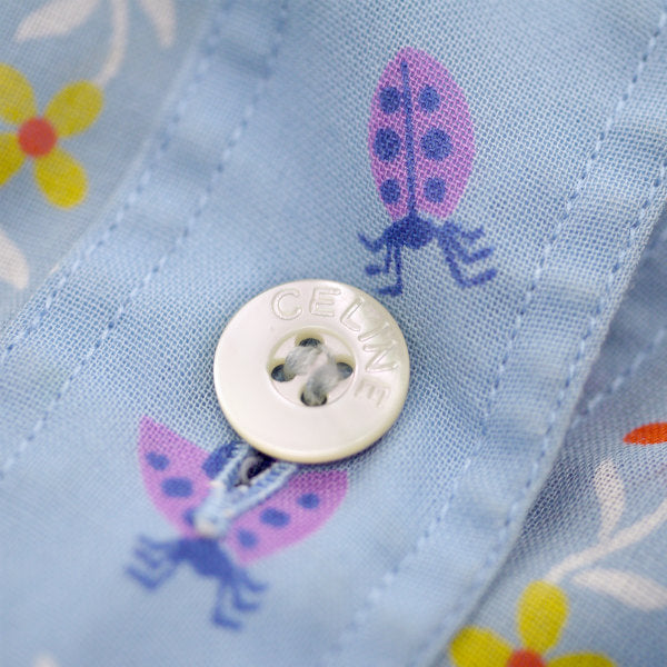 淡いブルーに、花柄とテントウ虫が全面にプリントされた可愛すぎる一枚です!
