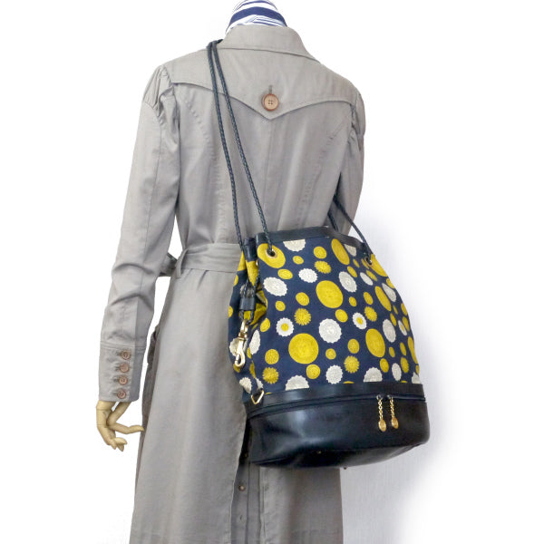 オールドグッチ レア!!太陽神 大型巾着ショルダー(紺系)