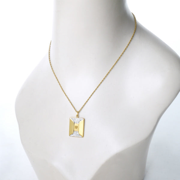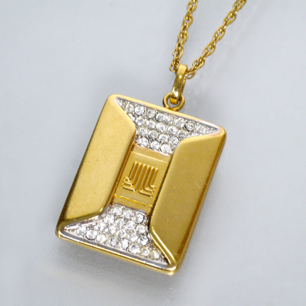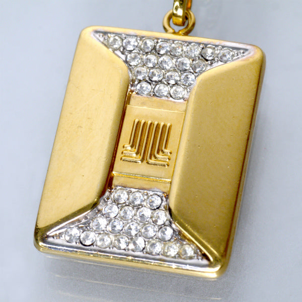 スクエア型に、ロゴとクリアストーンが施されたネックレス!
